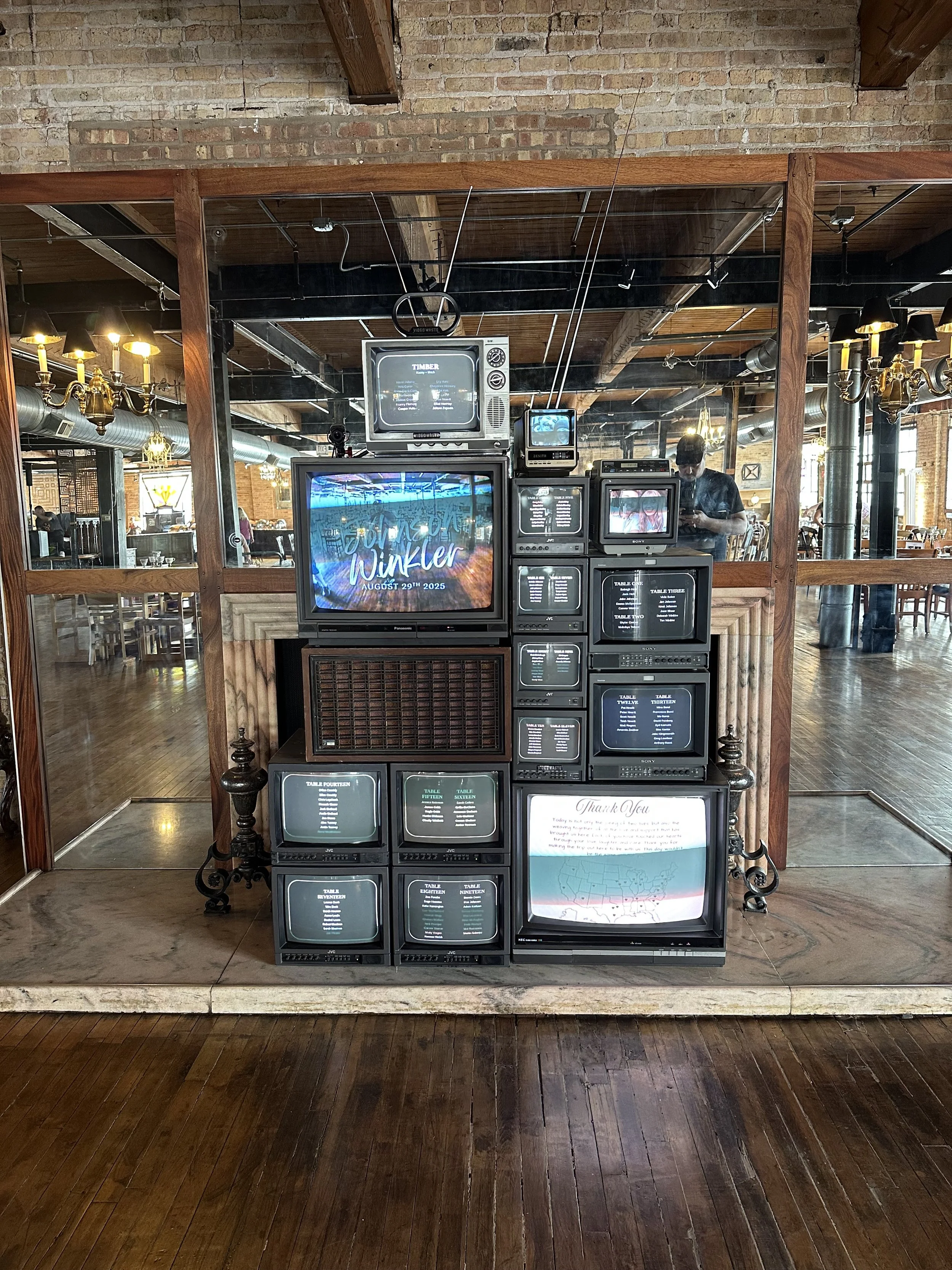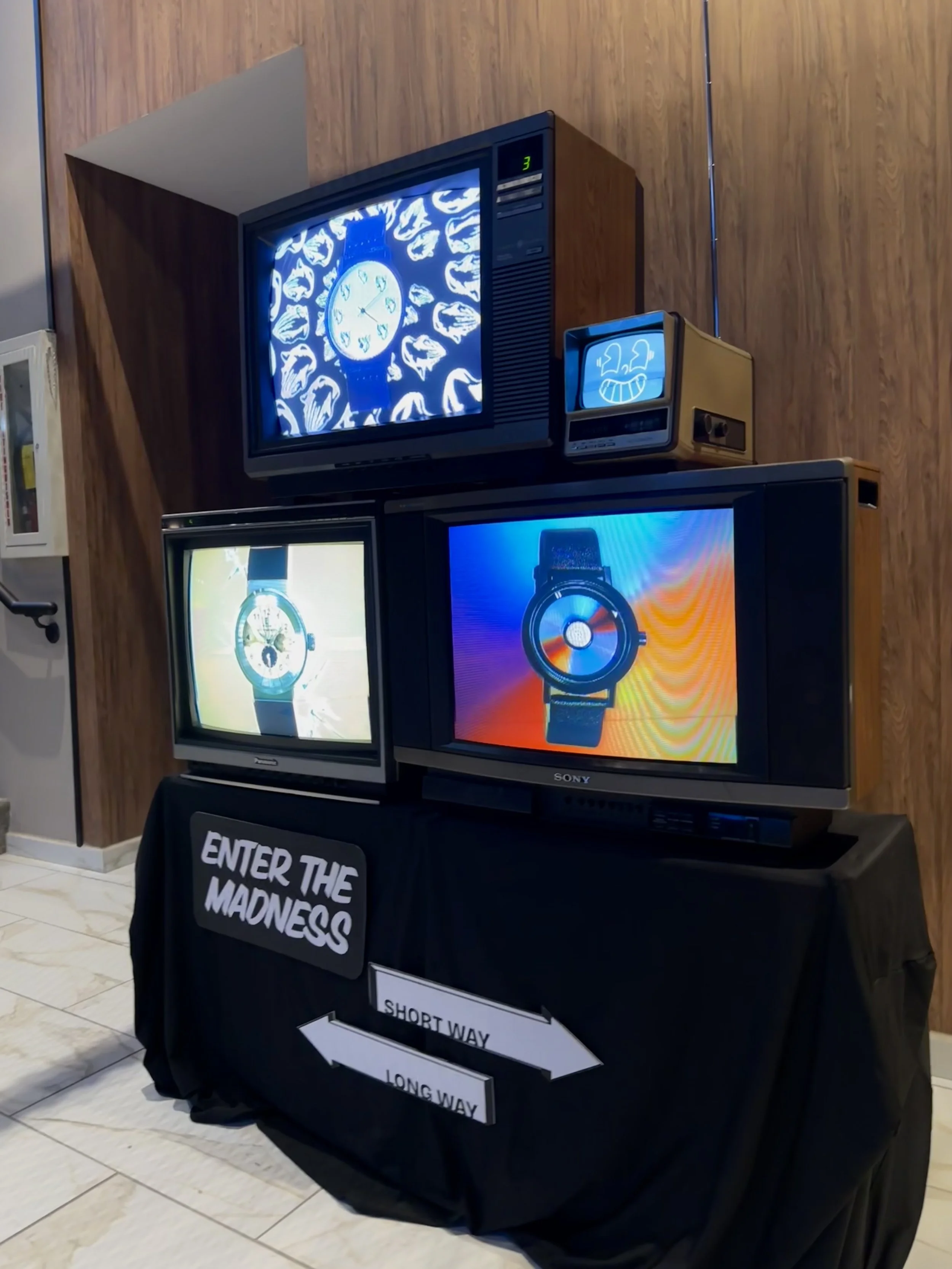 Each installation is custom, combining one or more of our core visual modalities. Every installation draws on our ethos of reuse, repair, reimagine. Giving life and purpose to video gear otherwise destined for landfill.